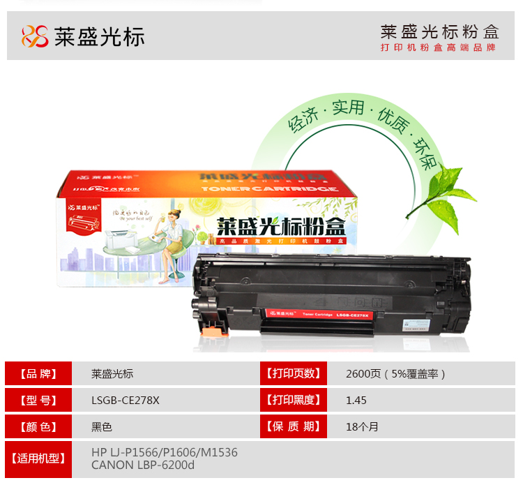 商品名称:莱盛光标 LSGB-CE278X 适用 HP LJ-P1566/P1606/M1536;CANON LBP-6200d