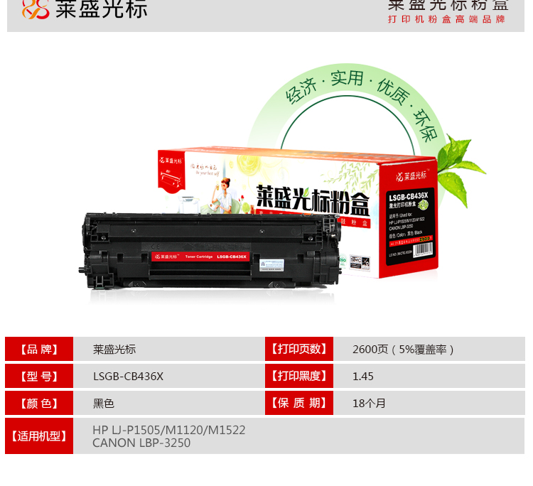商品名称:莱盛光标 LSGB-CB436X 适用 HP LJ-P1505/M1120/M1522;CANON LBP-3250