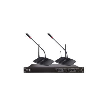 FUM-220N 一拖二红外无线鹅颈话筒是一款采用 UHF 频段 PLL 频率振荡方式及一键式红外线对频技术设计的两信道可调频无线会议麦克风,具备射频干扰屏蔽功能,有效阻止一切电磁干扰,完美的抗杂讯干扰特性;具有 800 个频点可选用;内置微电脑 CPU 控制;全金属材质标准机箱,面板配置两信道高亮度 LCD 液晶屏,显示工作通道、工作频率、6 级音频电平显示等,可以充分快捷地了解各接收机的全部讯息;采用电子式按键控制面板操作;主机分别提供 2 路平衡音频输出插座及混合不平衡输出,全面适应各种连接需求;会议底座采用独立外观设计,高保真金属拾音头,2.8 英寸高解像大屏幕功能显示,显示工作频率、话筒状态、电池电量等参数;底座表面采用高强度超耐磨抗刮花绒毛漆,耐用性极强;内置式天线,美观简洁大方;可选配不同长度不同音频特性的咪杆来应对各种使用需要,另外话筒底座背部可插装发言席名称标牌,会议桌面从此不再需要另摆桌牌,特别适合大中小型会议室、政府机关单位会议室、报告厅、新闻发布等多种不同应用场合。