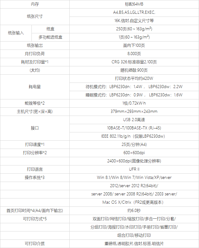 商品名称:佳能 LBP6230dn 黑白激光打印机