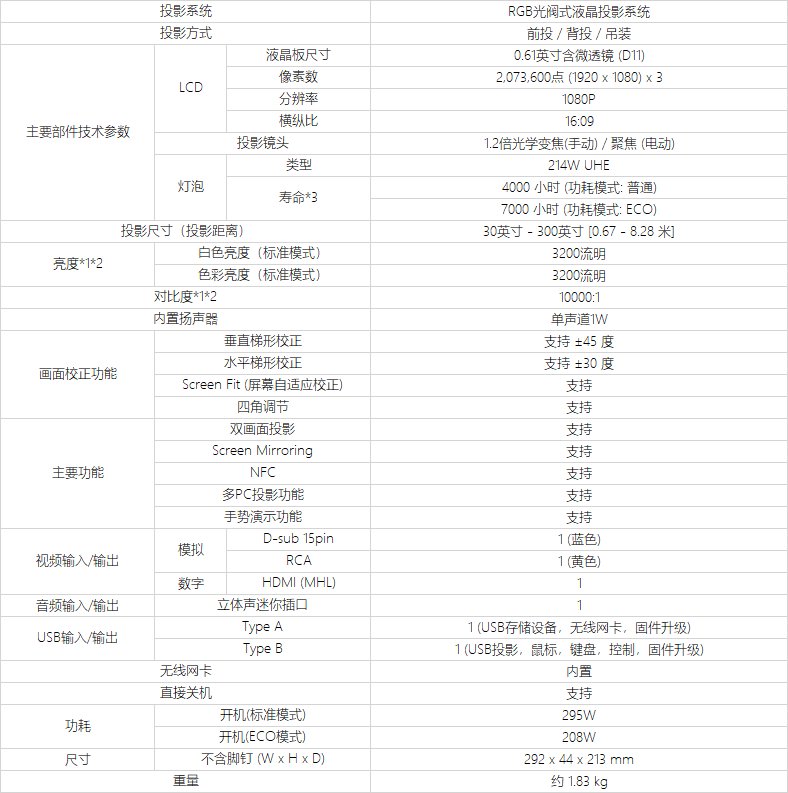 商品名称:爱普生 CB-1795F 商务超薄便携投影机2