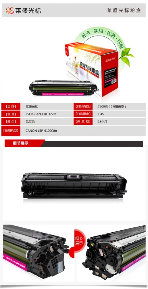 商品名称:莱盛光标 LSGB-CAN-CRG322M 适用于 CANON LBP-9100Cdn