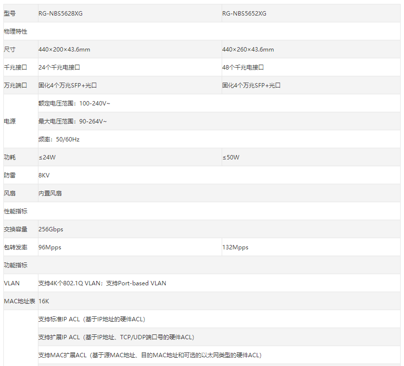 商品名称:锐捷 RG-NBS5652XG 万兆交换机