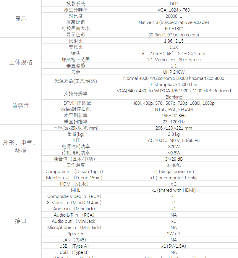 商品名称:明基 CP2611 投影仪