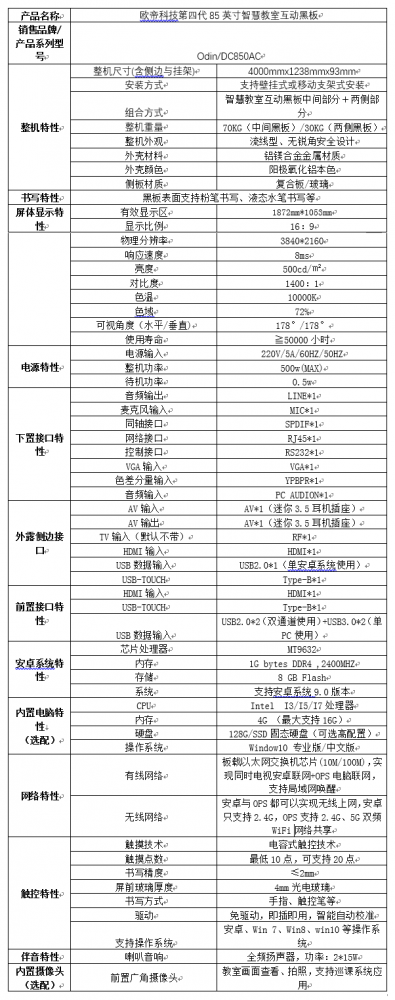 商品名称:欧帝85英寸智慧教室互动黑板