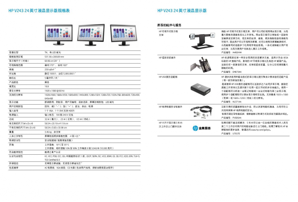 商品名称:惠普(hp) v243 24寸16:9宽屏显示器
